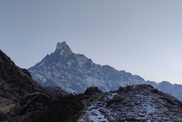 Starting in Pokhara, often referred to as the City of Lakes, we begin our journey by driving to Kande and proceeding on foot to Deurali. We move through captivating rhododendron woods, heading toward the mountain pass that looks over the Modi Valley. Traversing barren terrains and charming villages, the trek stretches from Deurali to Forest Camp and Badal Danda, concluding at High Camp located at 3540m. The journey proceeds through Upper View Point (4,250m) until arriving at the peak – Mardi Himal Base Camp at 4,500m. Here, Machhapuchhre (6,993m) and Mardi Himal (5,587m) gracefully ascend into the blue sky, while the stunning, far-reaching view of the Annapurna Mountain Range embraces the landscape. This journey provides a route through breathtaking terrains, enchanting woodlands, and culturally vibrant villages rich in history. Encountering such a mix of cultural richness and natural beauty set against the Himalayas is a rare opportunity. Perfect for experienced hikers and explorers, the Mardi Himal Base Camp Trek guarantees to ignite a sense of Himalayan marvel.